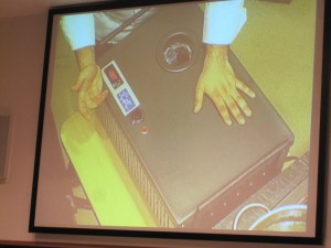 Chef León demonstrated three different techniques: olive pit charcoal fire, micro algae clarification, and cooking with plankton. He’s been working on those things for a while and has presented aspects of them before, but it was great to see it in person. He also unveiled a machine that has not  been presented in Spain yet.